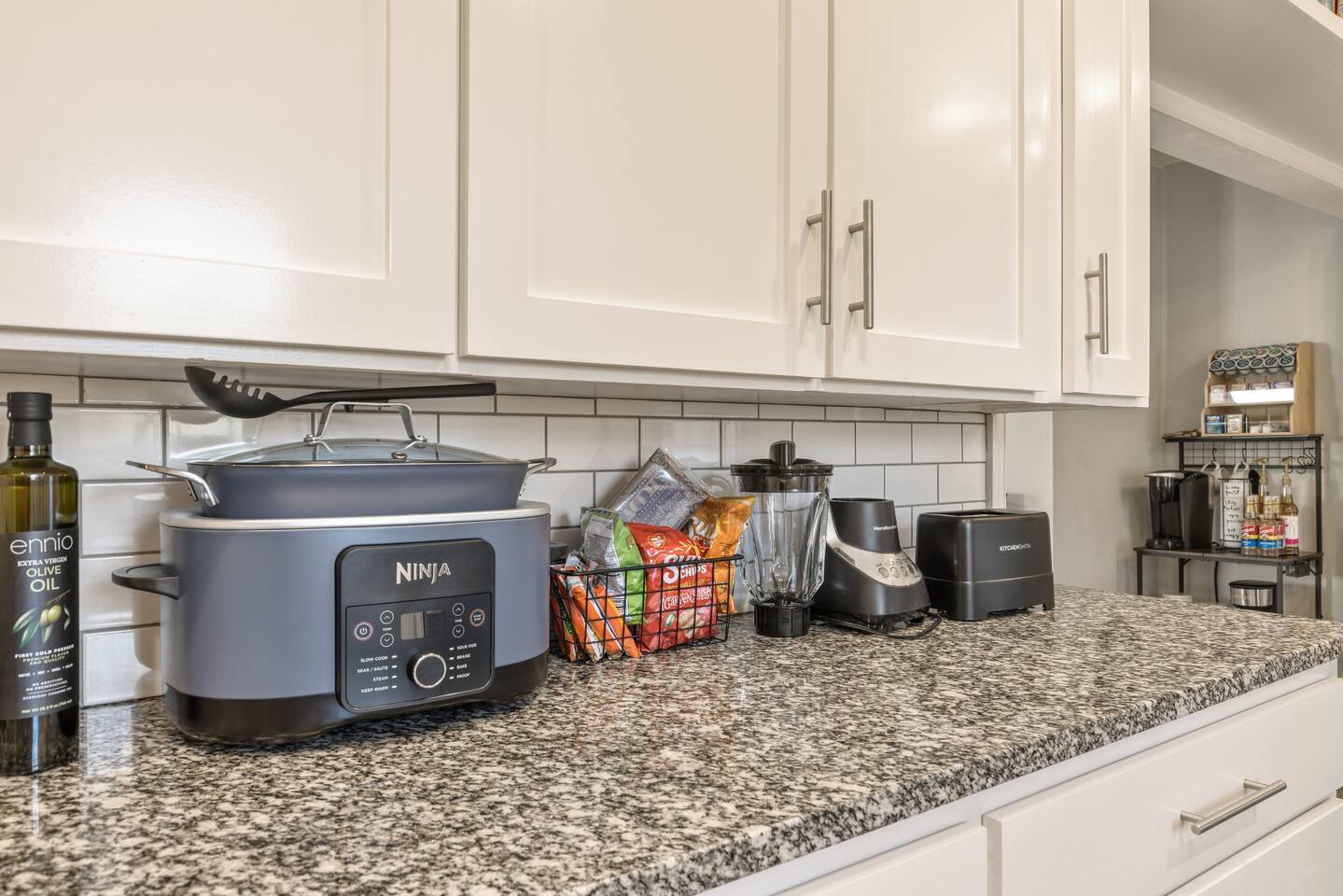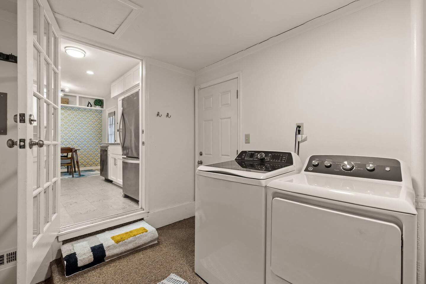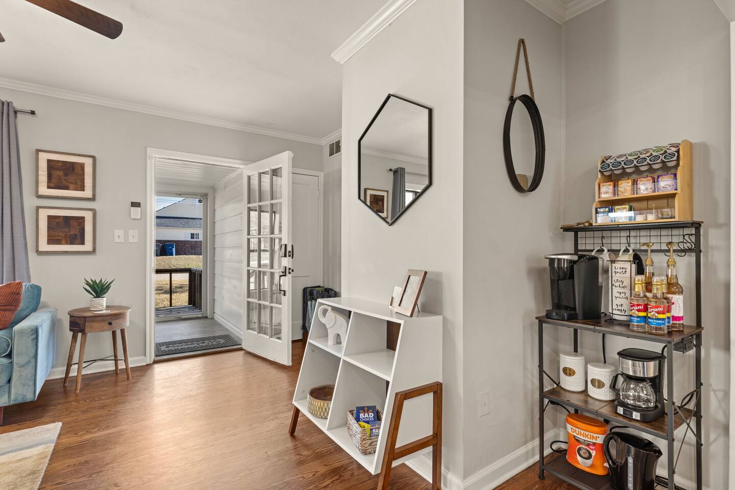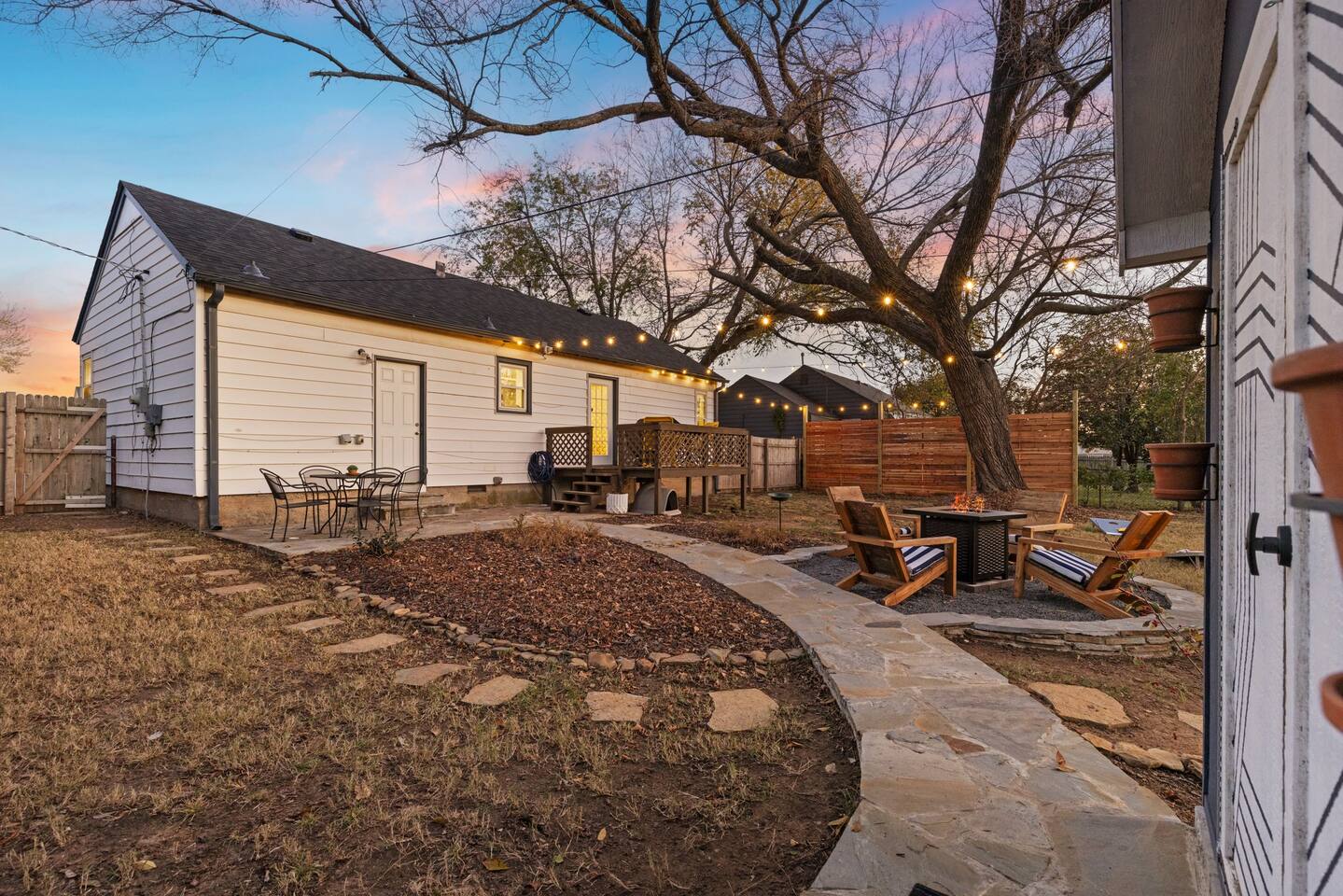 ~Living room~ There is a large smart TV that allows for unlimited streaming. There are two comfortably sofas, one of which is great for stretching out and relaxing like you are at home. WIFI- compatible with working remotely. Plenty of seating for all guests. There is a record player with fun albums available. plenty of throw pillows and blankets. Two additional blankets for your pet and an available dog bed if needed to have a nice space for your pet to rest near you. (Please note the fireplace is not functional) ~Kitchen & Dining~ Fully equipped kitchen, with every item we could think of to include to accommodate your stay. Fully stocked coffee & tea bar is included. variety of coffees including decaf, tea, honey, flavors, honey, cream, splenda and sugar. Board games stored in shelving in dining room. ~Bedroom One~ Queen size, very comfortable bed, closet, dresser, night stands, ceiling fan, chair, lamps. Accommodates 2 guests ~Bedroom Two~ Full over full trundle bed (two mattresses), very comfortable mattress, closet, ceiling fan, chair, lamp. Accommodates 4 guests. Playpen stored in this closet. ~Full Bathroom~ Located in the hall between two rooms. hairdryer available. Shower/tub located in the bathroom. ~Laundry room~ Washer and dryer with soap available for a few washes if needed as well as an iron. There is a small vacuum. mop and broom here. This room is just off of the Kitchen and located inside the home. Cornhole stored in laundry room. ~Outdoor Space~ Small deck off of kitchen, outdoor string lights, decorative privacy fencing. Fully fenced backyard. three different seating areas. Easy start firepit and propane BBQ grill just off kitchen on deck. Cornhole for a little fun is available. This is a very relaxing space after a busy day!