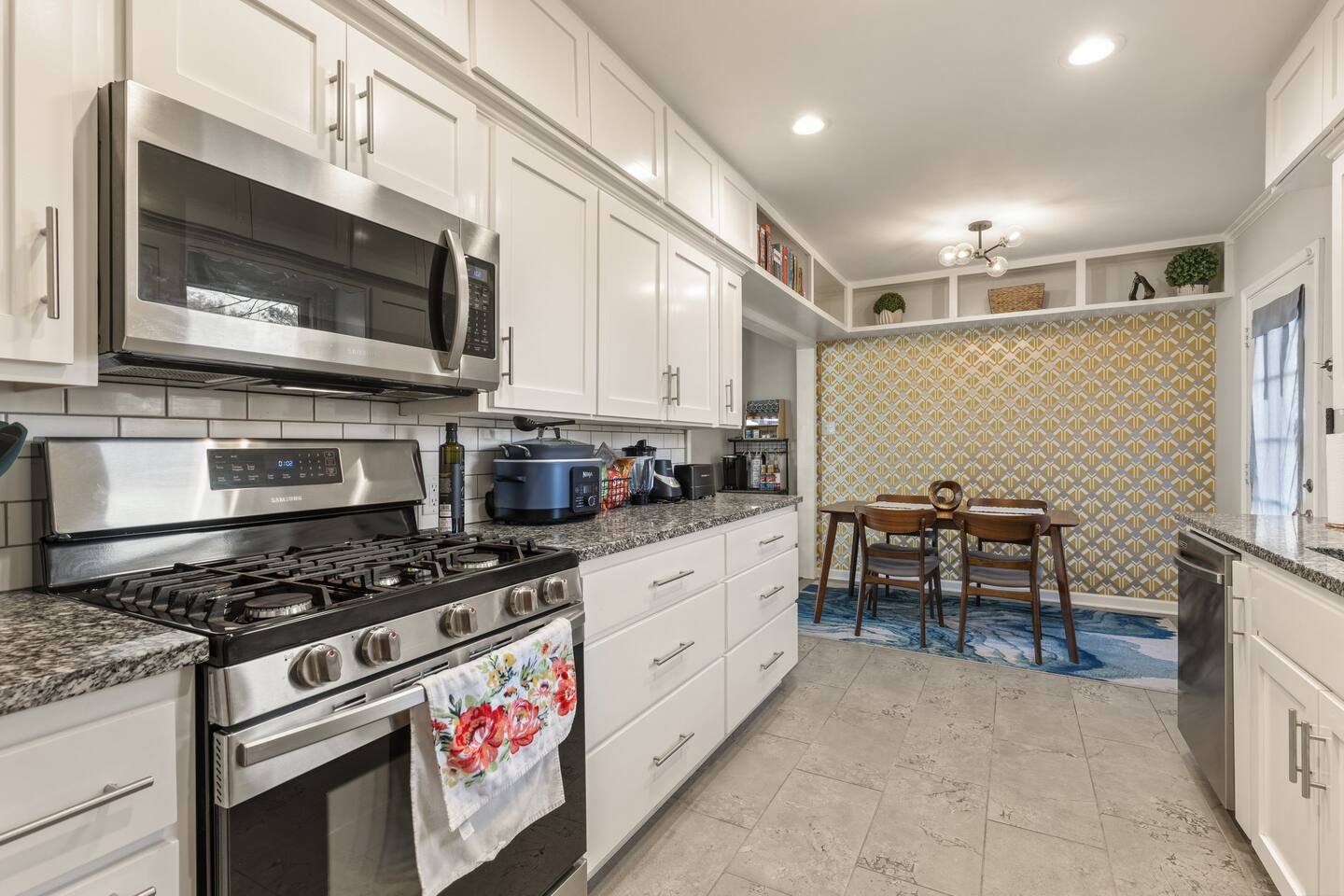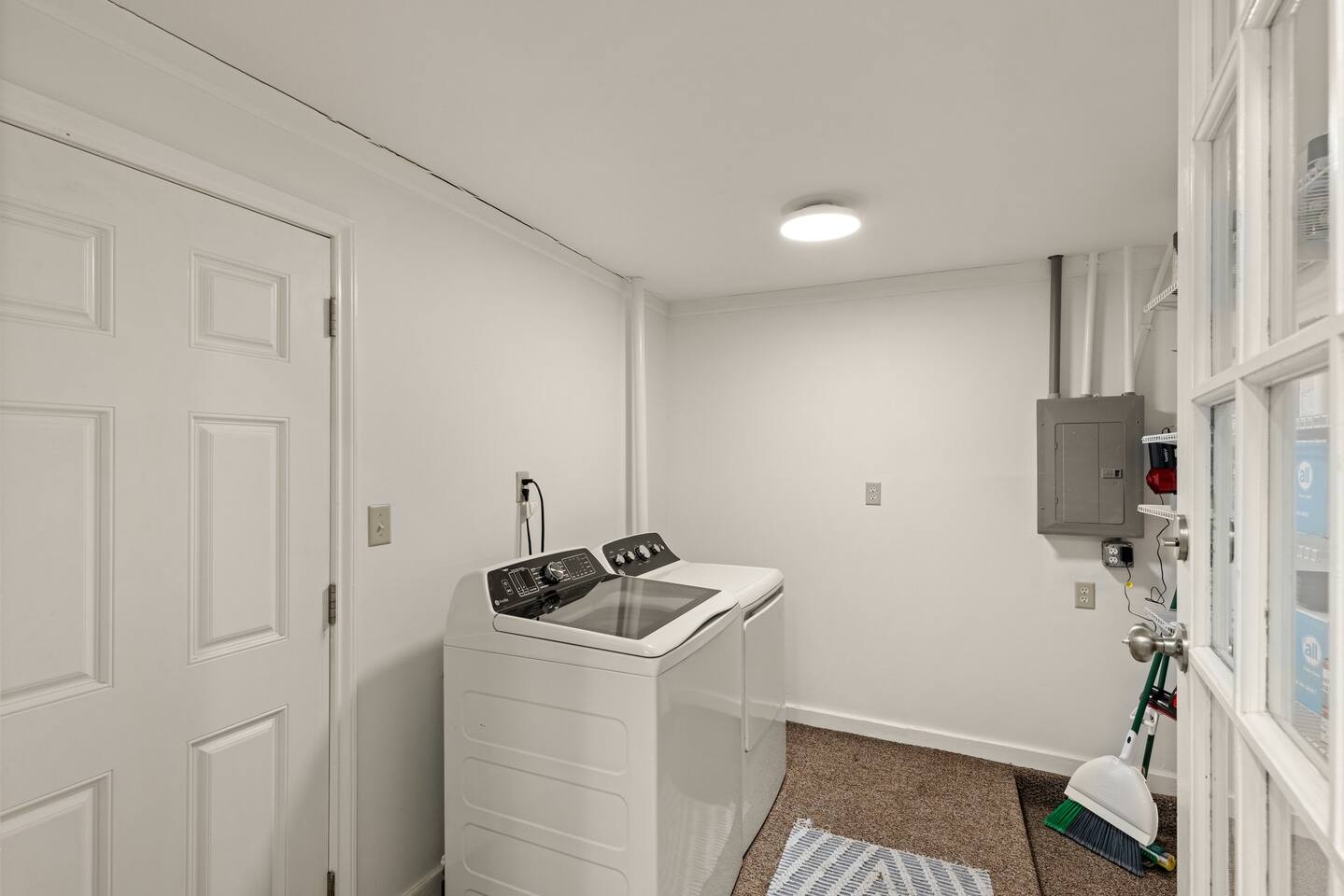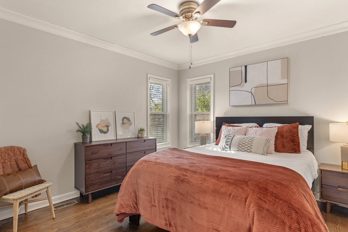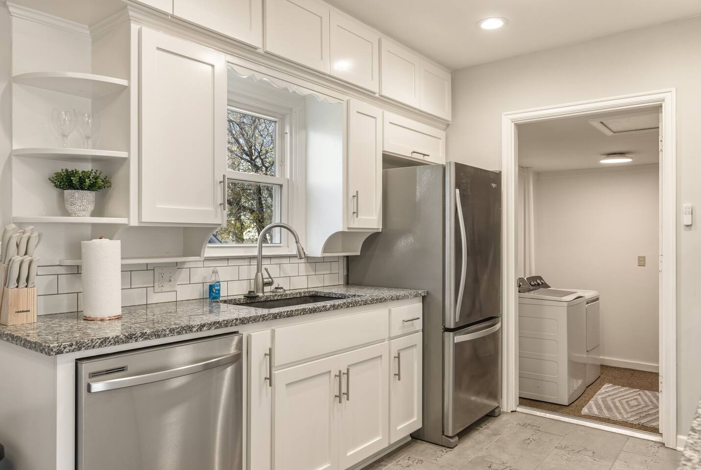 ~Living room~ There is a large smart TV that allows for unlimited streaming. There are two comfortably sofas, one of which is great for stretching out and relaxing like you are at home. WIFI- compatible with working remotely. Plenty of seating for all guests. There is a record player with fun albums available. plenty of throw pillows and blankets. Two additional blankets for your pet and an available dog bed if needed to have a nice space for your pet to rest near you. (Please note the fireplace is not functional) ~Kitchen & Dining~ Fully equipped kitchen, with every item we could think of to include to accommodate your stay. Fully stocked coffee & tea bar is included. variety of coffees including decaf, tea, honey, flavors, honey, cream, splenda and sugar. Board games stored in shelving in dining room. ~Bedroom One~ Queen size, very comfortable bed, closet, dresser, night stands, ceiling fan, chair, lamps. Accommodates 2 guests ~Bedroom Two~ Full over full trundle bed (two mattresses), very comfortable mattress, closet, ceiling fan, chair, lamp. Accommodates 4 guests. Playpen stored in this closet. ~Full Bathroom~ Located in the hall between two rooms. hairdryer available. Shower/tub located in the bathroom. ~Laundry room~ Washer and dryer with soap available for a few washes if needed as well as an iron. There is a small vacuum. mop and broom here. This room is just off of the Kitchen and located inside the home. Cornhole stored in laundry room. ~Outdoor Space~ Small deck off of kitchen, outdoor string lights, decorative privacy fencing. Fully fenced backyard. three different seating areas. Easy start firepit and propane BBQ grill just off kitchen on deck. Cornhole for a little fun is available. This is a very relaxing space after a busy day!