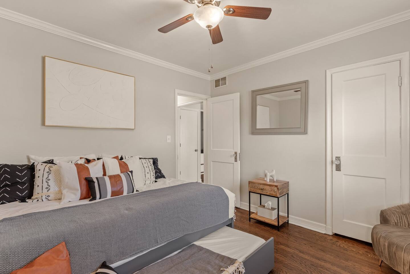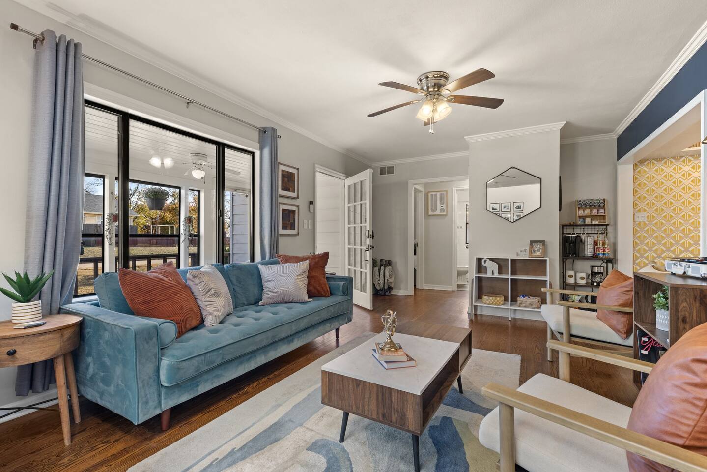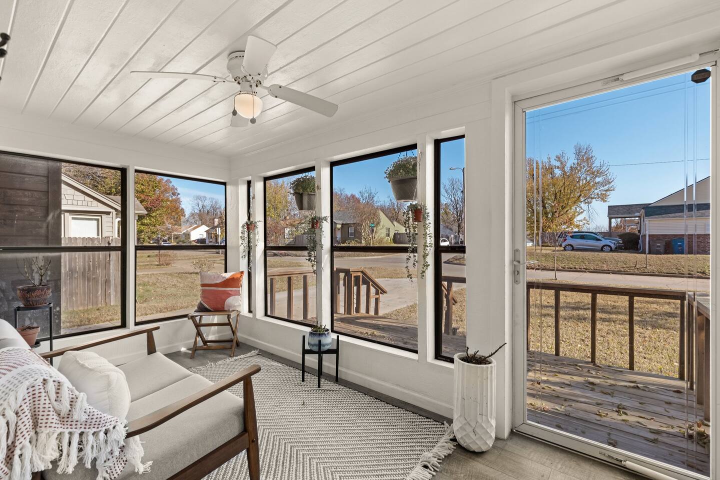 Enjoy this charming yet comfortable home, just steps away from the Tulsa Expo Center near gate 7. Find comfort in knowing that it is a 4 minute drive to the University of Tulsa, 6 mins to Cherry Street, 9 mins to downtown/BOK center, 10 mins to the airport or gathering place, and 2 mins to shopping for essentials. Don't worry, you can enjoy a cup of coffee in the sunroom or backyard deck area in this quiet neighborhood. This home has a spacious living space and comfortable beds.